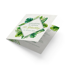 Hat man in den Sommermonaten Geburtstag gibt es einfach nichts Schöneres als ihn draußen zu feiern. So musste eine entsprechende Einladungskarte gefunden werden, die Vorfreude auf die warme Jahreszeit und eine fröhliche und ungezwungene Geburtstagsfeier bereitet. Die quadratische Geburtstagseinladungskarte Floral-Greenery inspiriert zu einer kreativen Gestaltung und Sie können davon überzeugt sein, dass diese wunderschöne Karte Ihnen viele Zusagen sichern wird. Wer freut sich nicht, wenn er in seinem Briefkasten mal etwas anderes vorfindet als Rechnungen oder nervige Werbeprospekte. Per Email oder per SMS einzuladen ist natürlich auch eine Möglichkeit über Ihre Geburtstagsparty zu informieren, doch bei einer selbst erstellten Einladungskarte ist die Wertschätzung des einzelnen Gastes gegenüber ganz besonders deutlich und so wird man sich auch den Tag für das Geburtstagskind in jedem Fall freihalten.