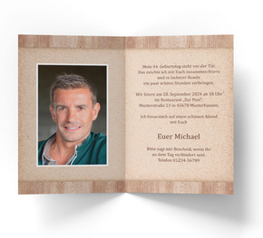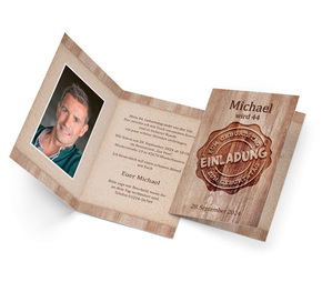 Für Sie soll es die Einladungskarte zum Geburtstag Brandsiegel sein, die entspricht absolut genau Ihren Vorstellungen. Eine Designvorlage, die auch bei unseren anderen Kunden sehr gut ankommt. Da lässt der geladene Gast sich nicht zweimal bitten und nimmt Ihre Einladung liebend gerne an. Solch eine tolle Einladungskarte verspricht Ihren Gästen eine Menge Spaß und gute Bewirtung, dieses Versprechen sollte erfüllt werden. Doch zu Ihrem Geburtstag darf es auch mal etwas mehr sein und man tut alles dafür, dass der Gast am Ende des Tages von einer tollen Feier begeistert nach Hause zurückkehrt. Sie gestalten und bestellen die Einladungskarte am besten gleich online, damit sich Freunde und Verwandte diesen Tag rechtzeitig für Sie freihalten können. Wir drucken in gewohnt sehr guter Qualität für Sie. Besser Sie bestellen die passenden Umschläge gleich mit, so machen sich die Karten schnell auf den Weg zu Ihren Gästen. Ist die Feier erst vorbei, gilt es Danke sagen, z. B. mit der passenden Danksagung zusammen mit den schönsten Fotos der Feier.